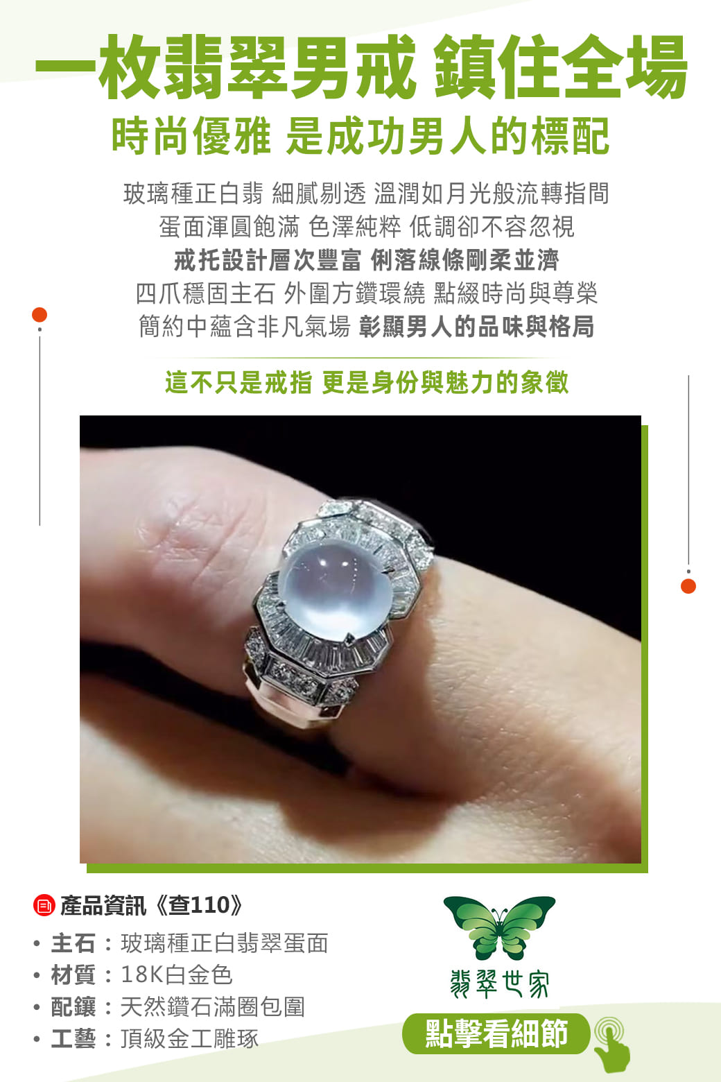 《查110》玻璃種正白翡$265,000💰