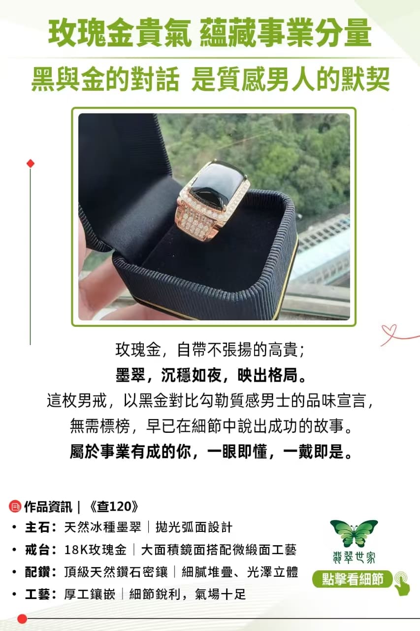 《查120》冰種墨翠男戒$235,000💰